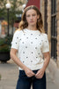Classic never looked so cute. The Margot Polka Dot Sweater features embroidered dots on soft white cotton—playful, polished, and perfect for every season. Style it with denim or skirts for an instant mood boost.